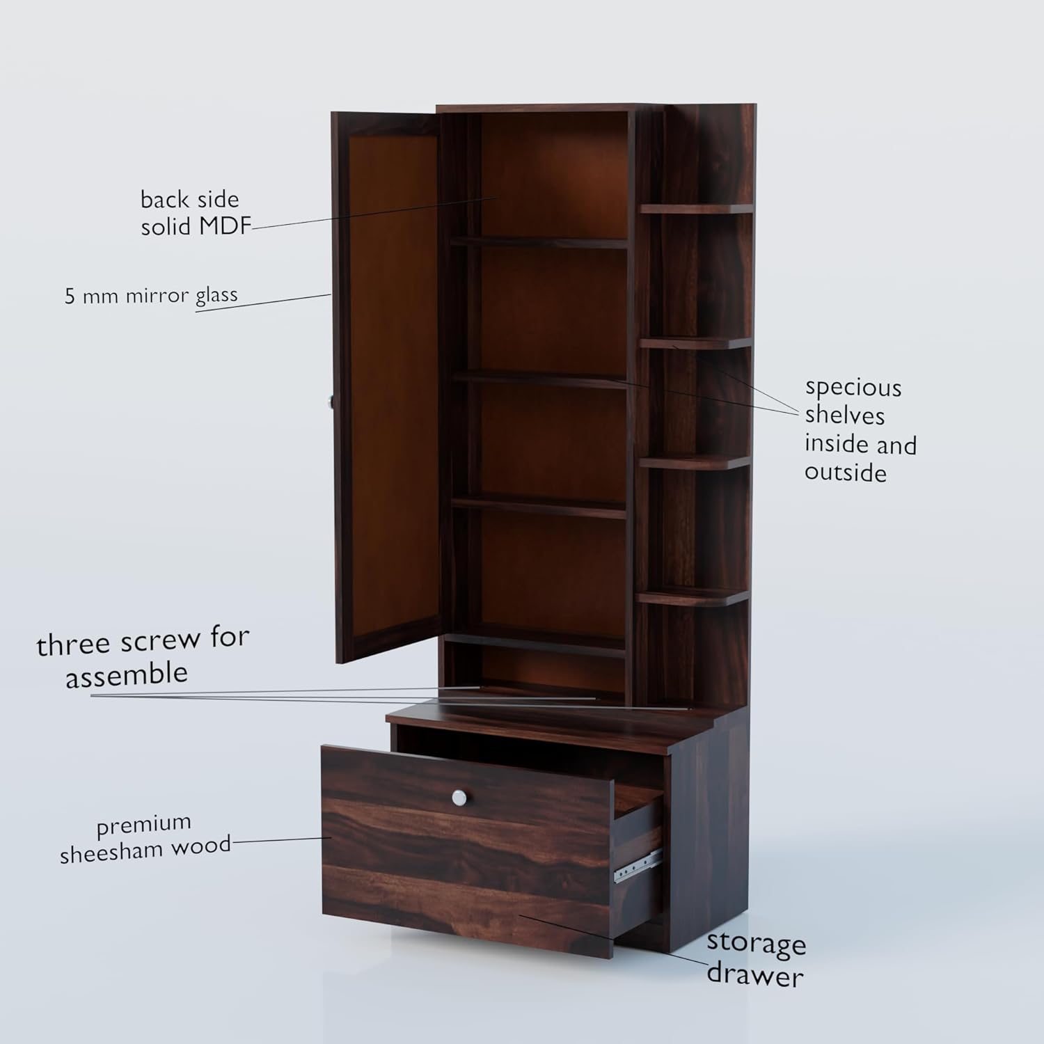 AMAZART Wood Dressing Table with Mirror and Storage | Wooden Dressing with Drawer | (Walnut Finish)