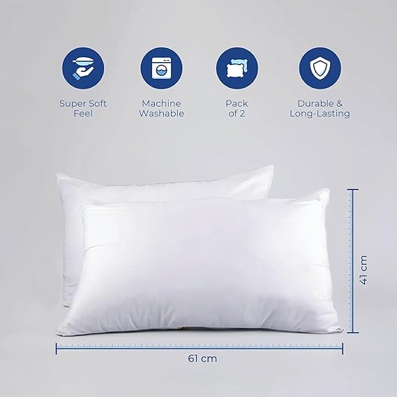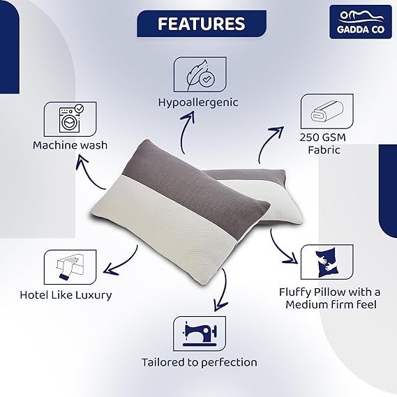 GADDA CO Hollow Sleeping Fiber Pillow with Zip | Set of 4| Height Adjustable Sleeping Bed Pillow, Soft and Fluffy | White and Grey, Standard Size with 3 Months Warranty