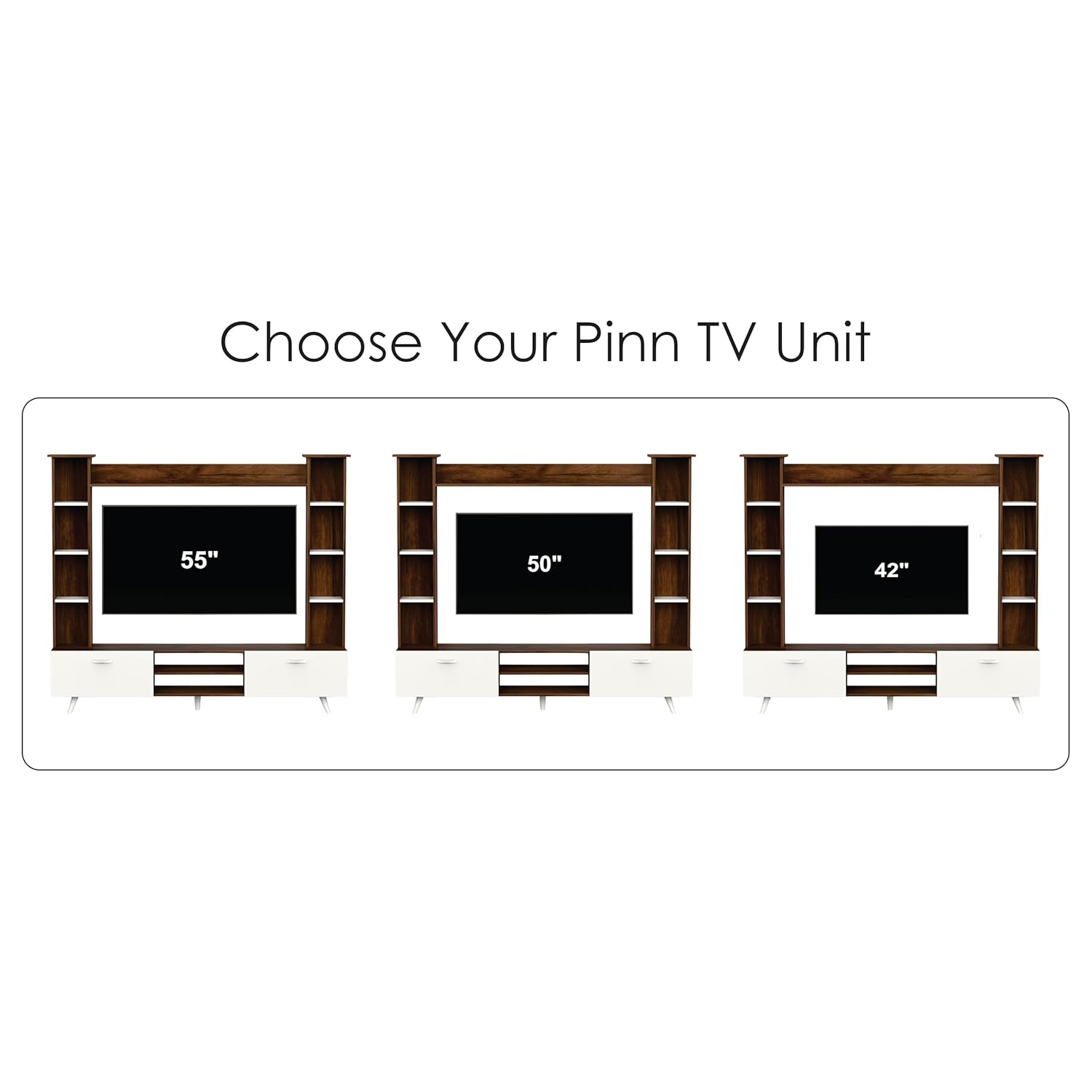 1. BLUEWUD Pinn Modern TV Unit/TV Stand/TV Cabinet Panel/Entertainment CenterwithStorage & Display Shelves for Books & Décor, Living Room Fits Upto 60 Inches – DIY (Brown Maple & White)